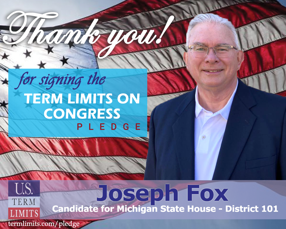 Detroit, MI – U.S. Term Limits (USTL), the leader in the national, non-partisan movement to limit terms for elected officials, is gathering support from state lawmakers across the nation. Its mission is to get 34 states to apply for an amendment proposal convention specific to term limits on Congress. Michigan state house candidate, Joseph Fox (district 101), has  committed support for term limits on Congress by signing the U.S. Term Limits pledge. Fox is the first signer in this race.