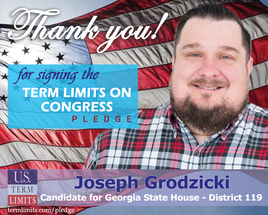 Statham, GA – U.S. Term Limits (USTL), the leader in the national, non-partisan movement to limit terms for elected officials, is gathering support from state lawmakers across the nation. Its mission is to get 34 states to apply for an amendment proposal convention specific to term limits on Congress. Georgia state house candidate, Joseph Grodzicki (district 119), has committed support for term limits on Congress by signing the Term Limits Convention pledge. The special primary election is scheduled for January 31, 2023.