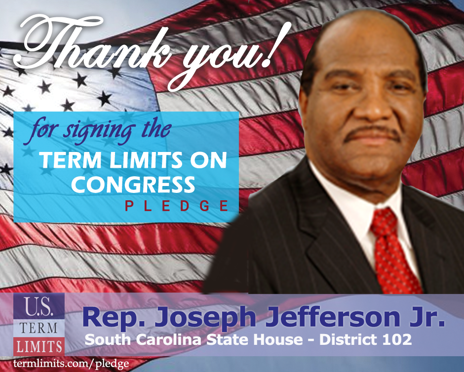 Columbia, SC – U.S. Term Limits (USTL), the leader in the national, non-partisan movement to limit terms for elected officials, is gathering support from state lawmakers across the nation. Its mission is to get 34 states to apply for an amendment proposal convention specific to term limits on Congress. South Carolina state Rep. Joseph Jefferson Jr. (district 102), has committed support for term limits on Congress by signing the Term Limits Convention pledge.