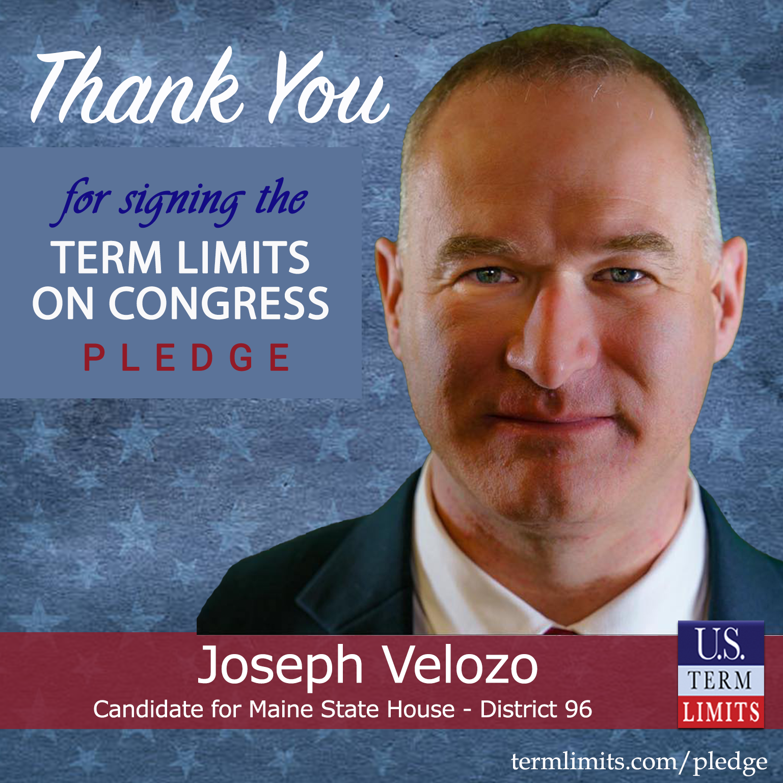 Lewiston, ME – U.S. Term Limits (USTL), the leader in the national, non-partisan movement to limit terms for elected officials, is gathering support from state lawmakers across the nation. Its mission is to get 34 states to apply for an amendment proposal convention specific to term limits on Congress. Maine state house candidate, Joseph Velozo (District 96), has committed support for term limits on Congress by signing the Term Limits Convention Pledge.