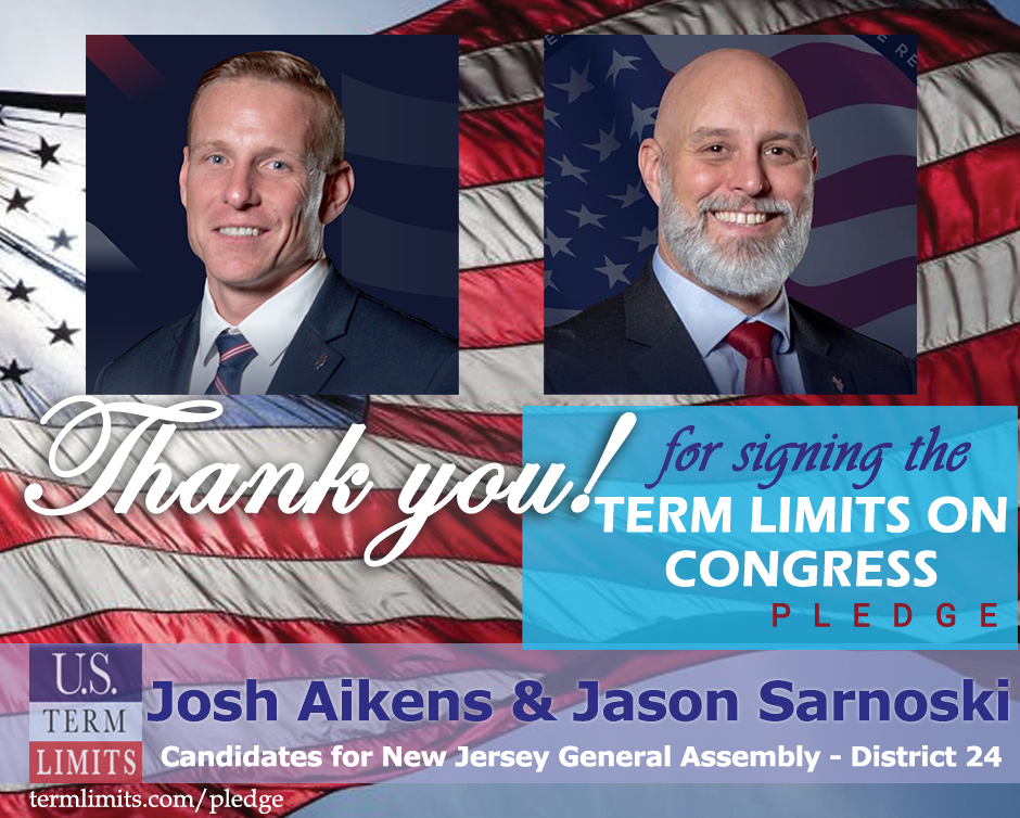 Sparta, NJ – U.S. Term Limits (USTL), the leader in the national, non-partisan movement to limit terms for elected officials, is gathering support from state lawmakers across the nation. Its mission is to get 34 states to apply for an amendment proposal convention specific to term limits on Congress. New Jersey general assembly candidates, Josh Aikens and Jason Sarnoski (district 24), has committed support for term limits on Congress by signing the Term Limits Convention pledge. The primary election is scheduled for June 6, 2023.