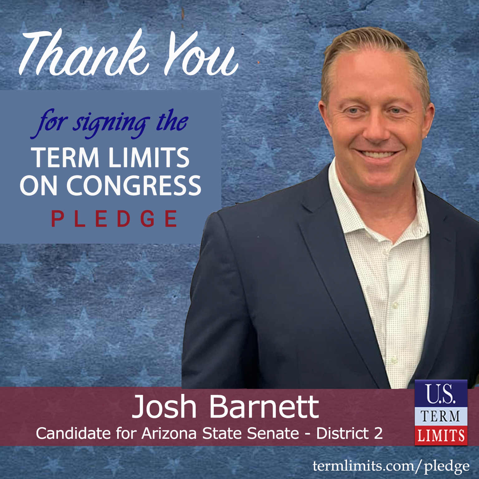 Deer Valley, AZ – U.S. Term Limits (USTL), the leader in the national, non-partisan movement to limit terms for elected officials, is gathering support from state lawmakers across the nation. Its mission is to get 34 states to apply for an amendment proposal convention specific to term limits on Congress. Arizona state senate candidate, Josh Barnett (District 2), has committed support for term limits on Congress by signing the Term Limits Convention Pledge. Previously, incumbent Senator Shawnna Bolick also signed the pledge.