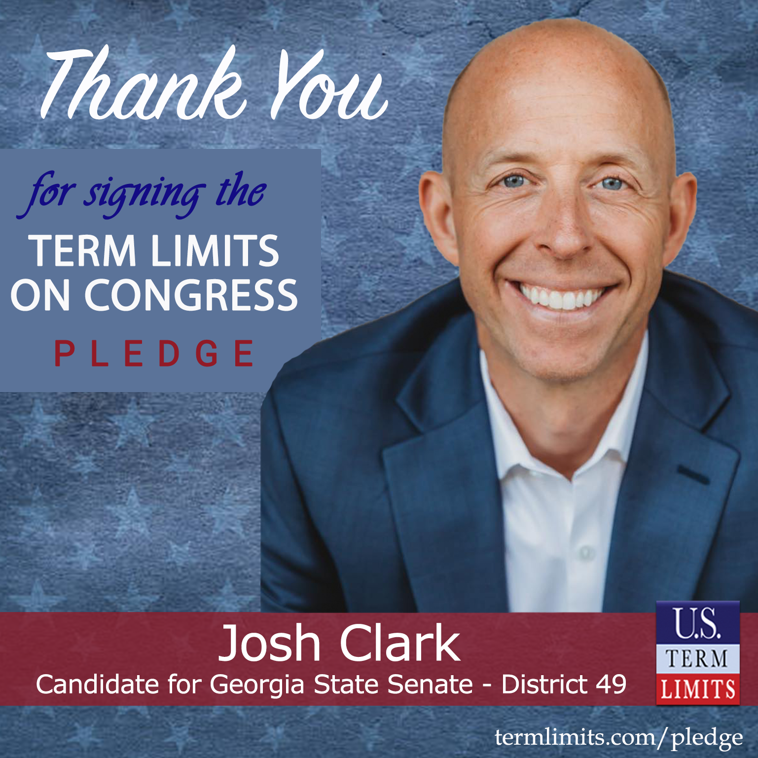 Gainesville, GA – U.S. Term Limits (USTL), the leader in the national, non-partisan movement to limit terms for elected officials, is gathering support from state lawmakers across the nation. Its mission is to get 34 states to apply for an amendment proposal convention specific to term limits on Congress. Georgia state senate candidate, Josh Clark (District 49), has committed support for term limits on Congress by signing the Term Limits Convention Pledge. Clark is the first signer in this race.