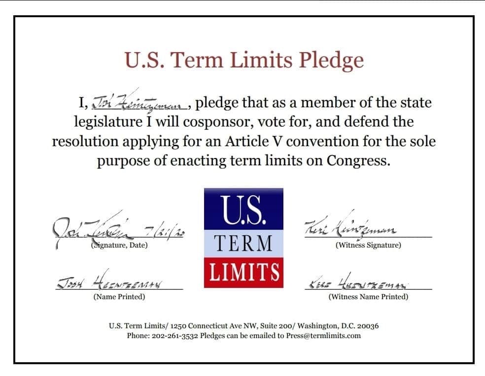 Rep. Josh Heintzeman Pledges to Support Congressional Term Limits