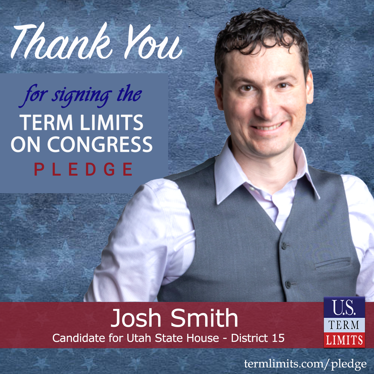 Layton, UT – U.S. Term Limits (USTL), the leader in the national, non-partisan movement to limit terms for elected officials, is gathering support from state lawmakers across the nation. Its mission is to get 34 states to apply for an amendment proposal convention specific to term limits on Congress. Utah state house candidate, Josh Smith (District 15), has committed support for term limits on Congress by signing the term limits convention pledge.