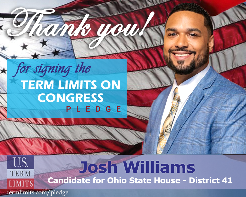 Kettering, OH – U.S. Term Limits (USTL), the leader in the national, non-partisan movement to limit terms for elected officials, is gathering support from state lawmakers across the nation. Its mission is to get 34 states to apply for an amendment proposal convention specific to term limits on Congress. Ohio state house candidate, Josh Williams (district 41), has committed support for term limits on Congress by signing the Term Limits Convention pledge.