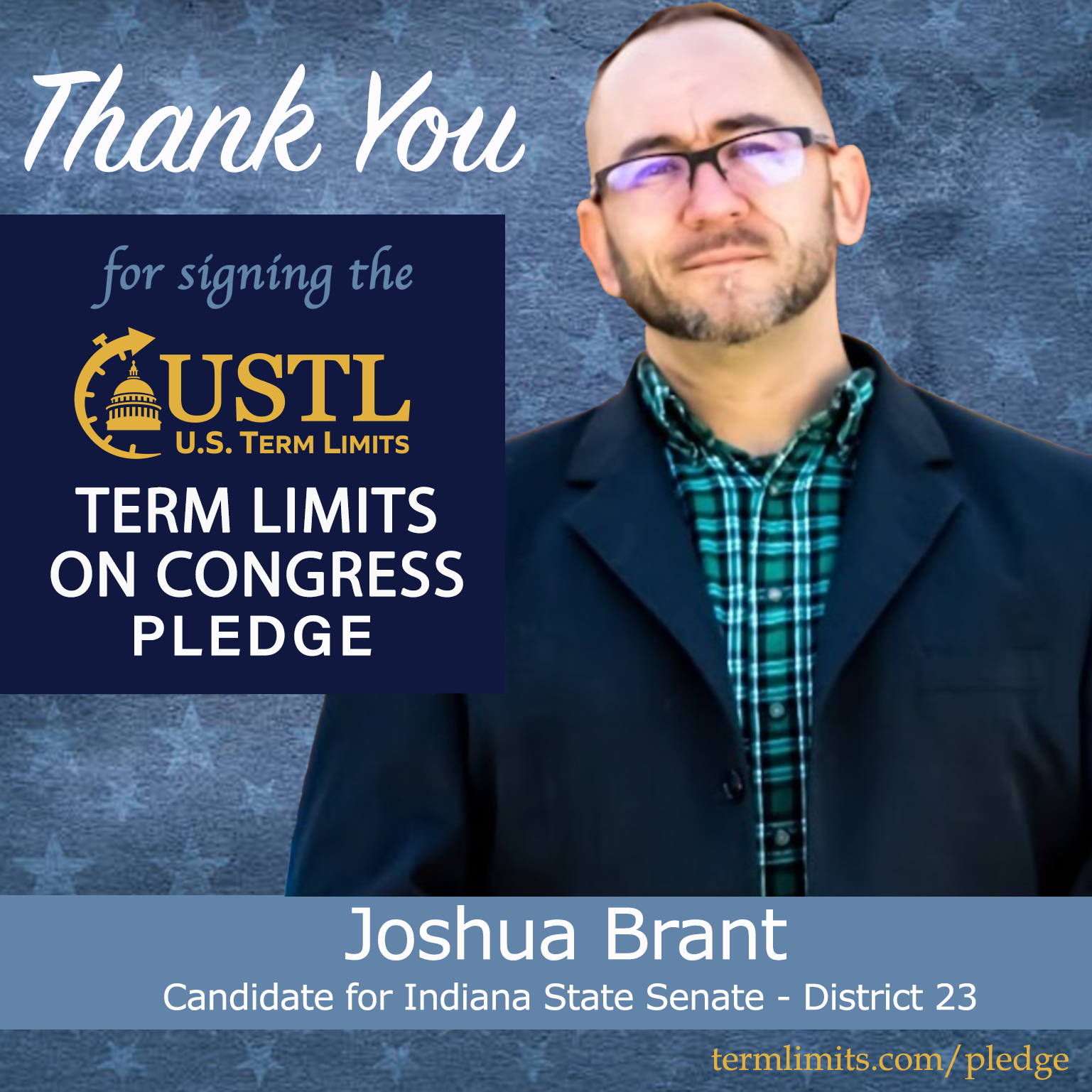West Lafayette, IN – U.S. Term Limits (USTL), the leader in the national, non-partisan movement to limit terms for elected officials, is gathering support from state lawmakers across the nation. Its mission is to get 34 states to apply for an amendment proposal convention specific to term limits on Congress. 2026 Indiana state senate candidate, Joshua Brant (district 23), has committed support for term limits on Congress by signing the term limits convention pledge. Previously, candidates Paula Copenhaver, Spencer Deery and David Sanders also signed.