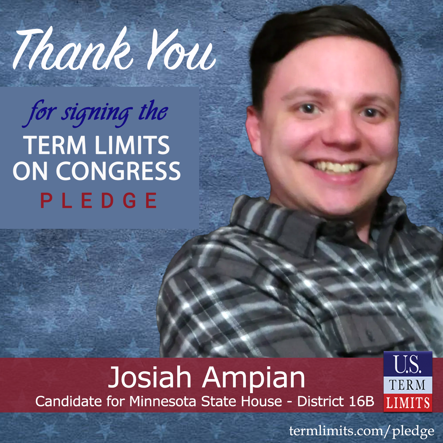 Willmar, MN– U.S. Term Limits (USTL), the leader in the national, non-partisan movement to limit terms for elected officials, is gathering support from state lawmakers across the nation. Its mission is to get 34 states to apply for an amendment proposal convention specific to term limits on Congress. Minnesota state house candidate, Josiah Ampian (district 16B), has committed support for term limits on Congress by signing the term limits convention pledge.
