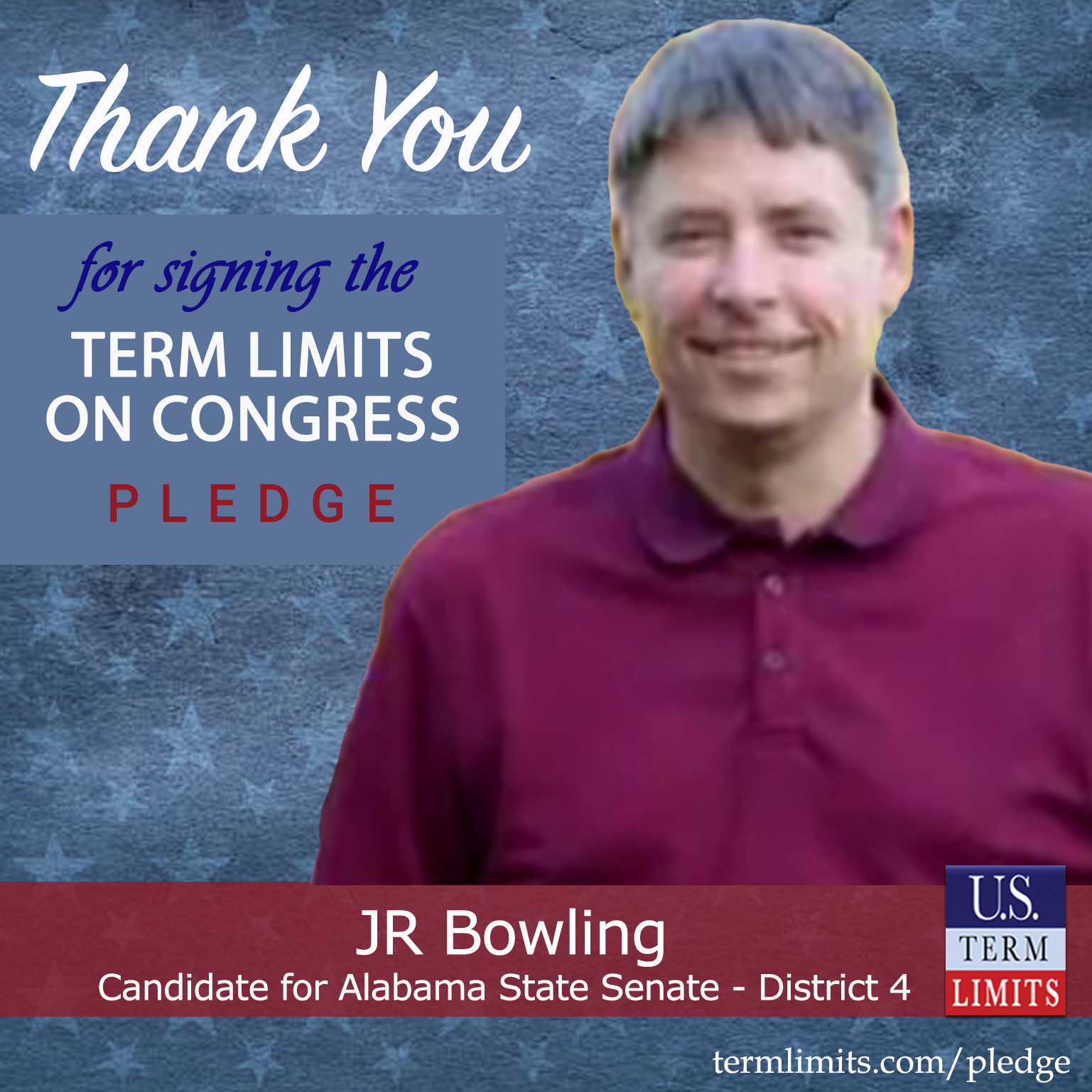 Cullman, AL – U.S. Term Limits (USTL), the leader in the national, non-partisan movement to limit terms for elected officials, is gathering support from state lawmakers across the nation. Its mission is to get 34 states to apply for an amendment proposal convention specific to term limits on Congress. 2026 Alabama state senate candidate, JR Bowling (district 4), has committed support for term limits on Congress by signing the term limits convention pledge. Bowling is the first signer in this race.