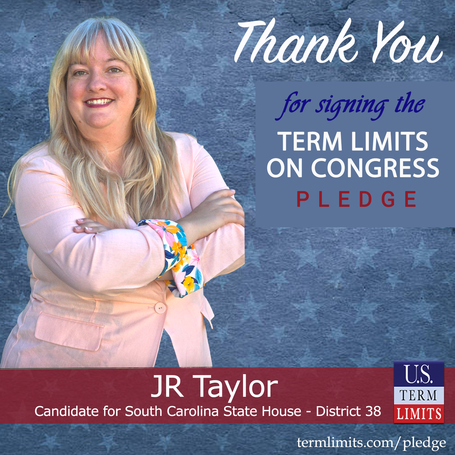 “Term limits are important for the future of our nation. I am glad that JR is willing to sign the candidate pledge and recognizes the positive impact term limits will have on our country”, says John Warren, state chair for U.S. Term Limits.