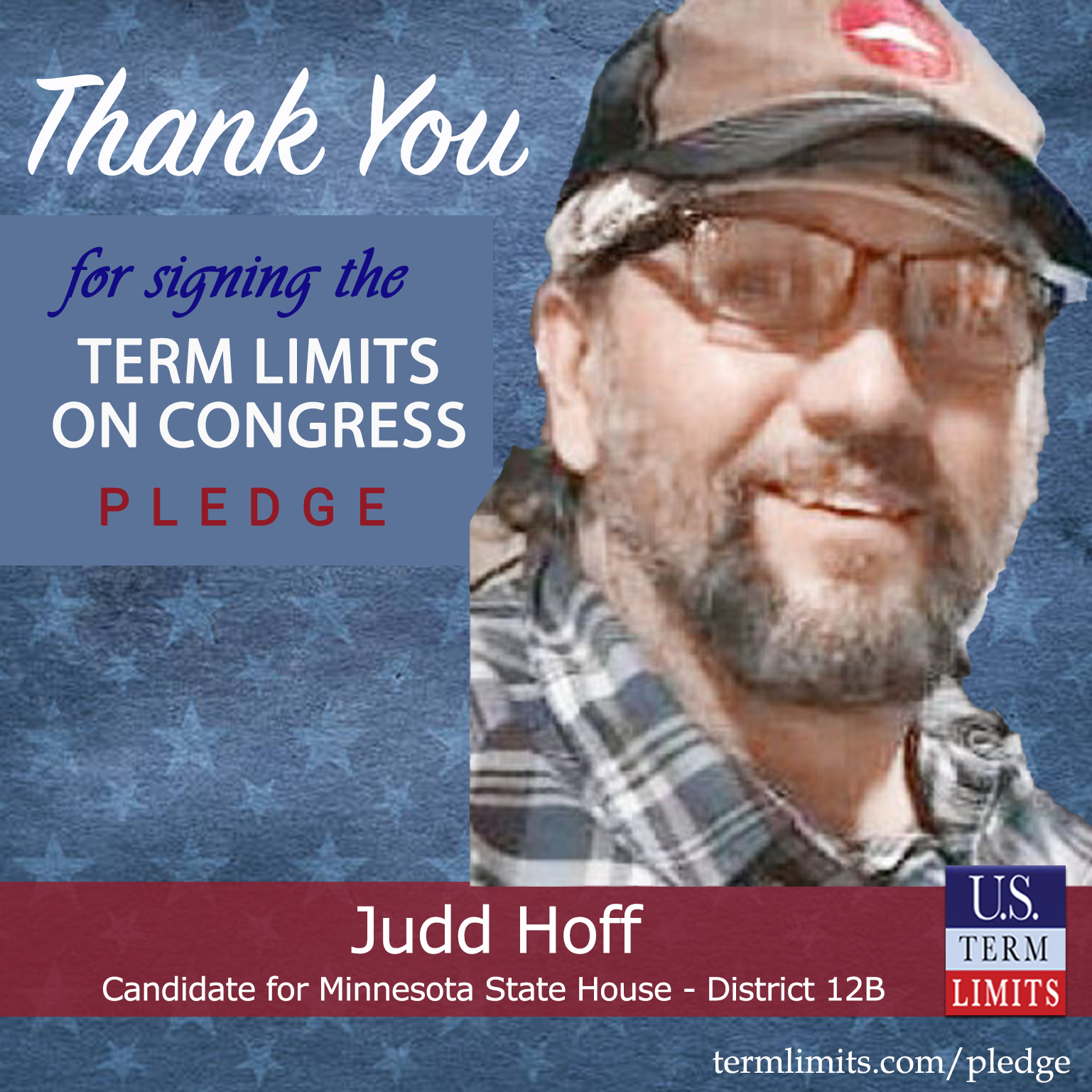 USTL President, Philip Blumel, commented on Hoff’s pledge saying, “Judd’s strong support of term limits shows that there are individuals who are willing to listen to the majority of voters who want term limits. America needs a Congress that will be served by citizen legislators, not career politicians.”