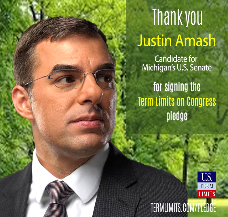 Washington D.C. – U.S. Term Limits (USTL), the leader in the non-partisan national movement to limit terms for elected officials, praises 2024 U.S. Senate candidate for Michigan, Justin Amash, for signing the pledge for an amendment to term limit Congress. Previously, candidates Glenn Wilson, Nikki Snyder, J.D. Wilson, Sharon Savage, Alexandria Taylor, Peter Meijer, Michael Hoover and Sherry O’Donnell also signed the pledge.