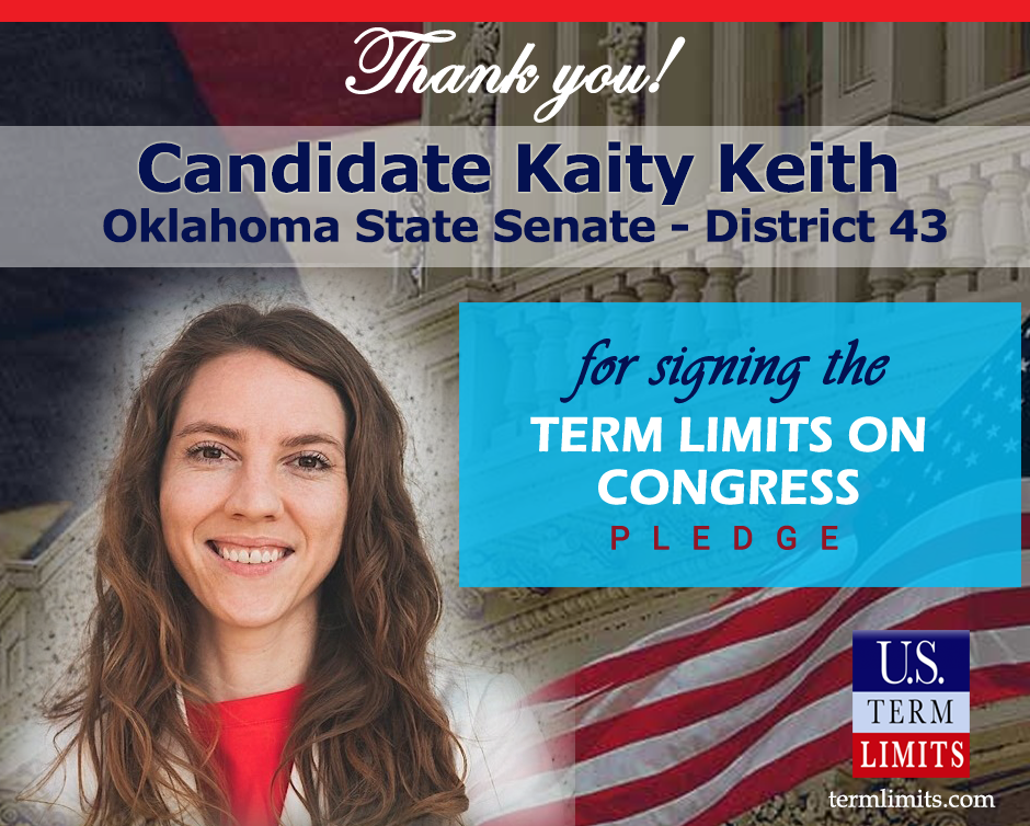 Washington, D.C. – U.S. Term Limits (USTL), the leader in the national, non-partisan movement to limit terms for elected officials, is gathering support from state lawmakers across the nation. Its mission is to get 34 states to apply for an amendment proposal convention specific to term limits on Congress. 2020 Oklahoma state senate candidate, Kaity Keith(district 43), has committed support for term limits on Congress by signing the Term Limits Convention pledge. Keith is the first signer in this race. The primary is scheduled for June 30, 2020.