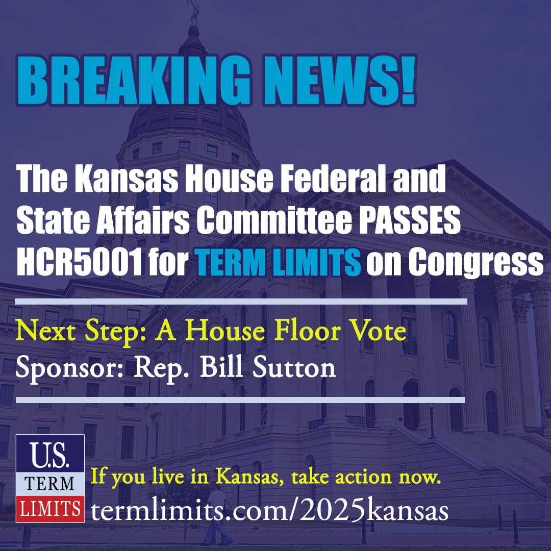 As U.S. Term Limits’ President Philip Blumel put it, “The people of Kansas are lucky to have public servants who see what is going on in D.C. and are willing to take action to fix it. They know that Congress won’t set term limits on itself. Therefore, it is the obligation of the states to do so.”
