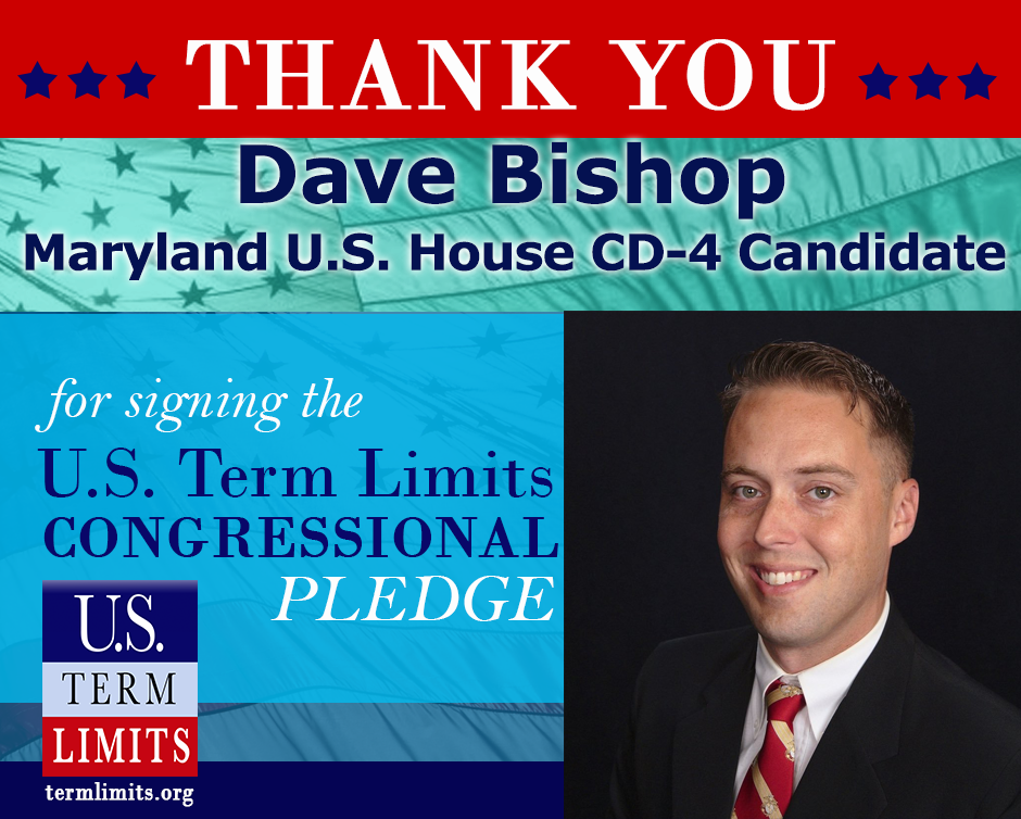 Washington, D.C. – U.S. Term Limits (USTL), the leader in the national movement to limit terms for elected officials, today praised Maryland candidate for U.S. House CD-4, Dave Bishop, for signing its congressional term limits pledge. Dave is the first candidate in this race to commit his support to proposing term limits on Congress.