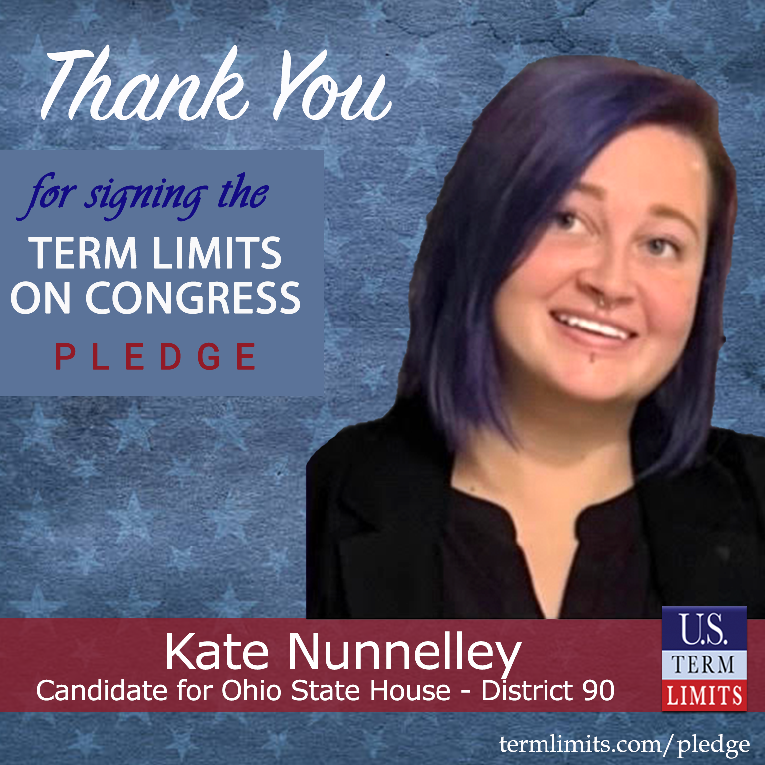 Columbus, OH – U.S. Term Limits (USTL), the leader in the national, non-partisan movement to limit terms for elected officials, is gathering support from state lawmakers across the nation. Its mission is to get 34 states to apply for an amendment proposal convention specific to term limits on Congress. Ohio state house candidate, Kate Nunnelley (District 90), has committed support for term limits on Congress by signing the term limits convention pledge. Previously, Rep. Justin Pizzulli and candidate Gina Collinsworth also signed the pledge.