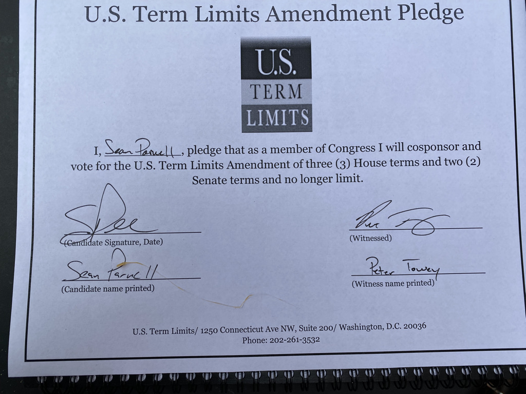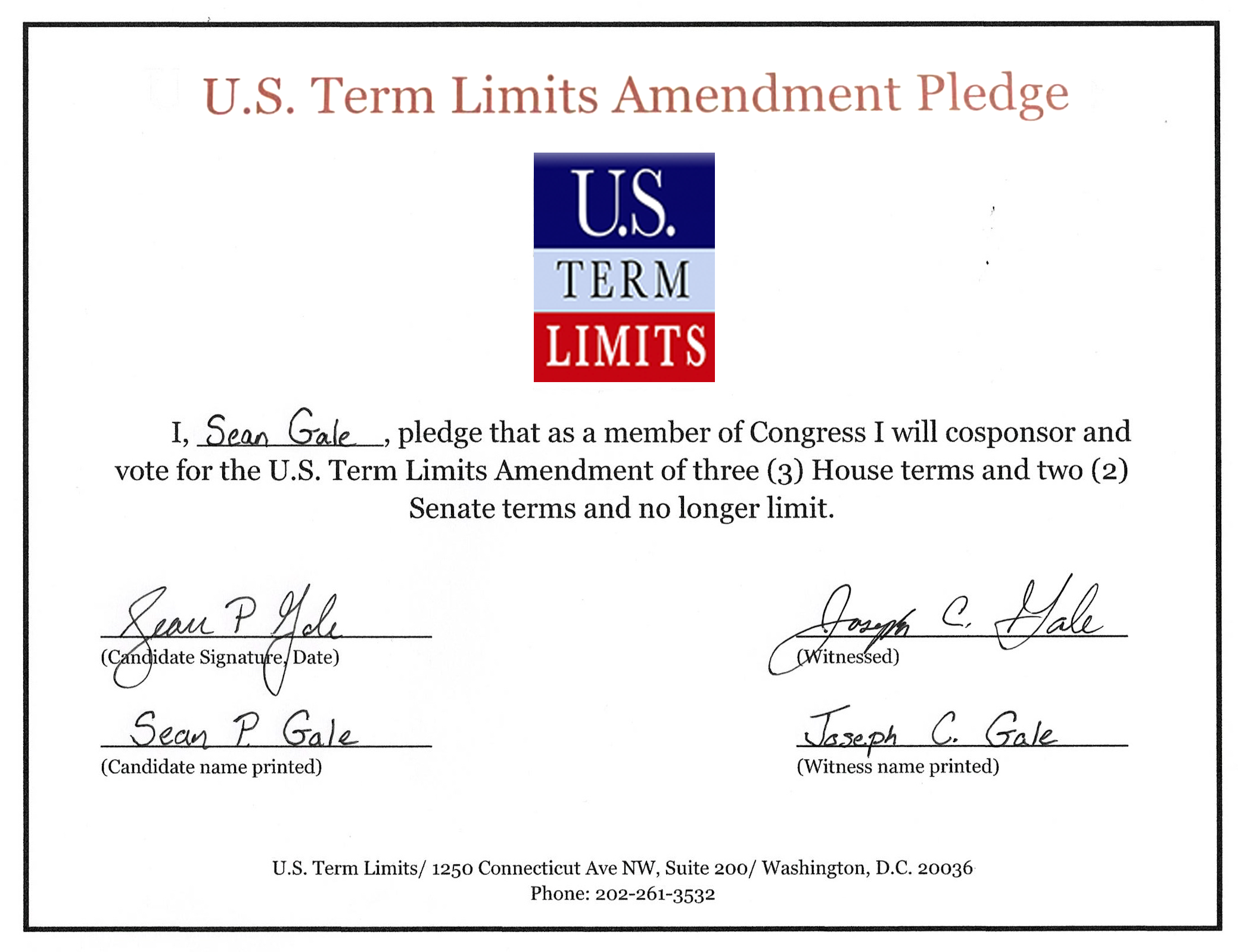 The U.S. Term Limits amendment pledge is provided to every announced candidate for federal office. It reads, “I pledge that as a member of Congress, I will cosponsor and vote for the U.S. Term Limits amendment of three (3) House terms and two (2) Senate terms and no longer limit.” The U.S. Term Limits constitutional amendment has been introduced in both the U.S. Senate by Senator Ted Cruz and his colleagues (SJR3) and the U.S. House by Representative Ralph Norman (HJR12).