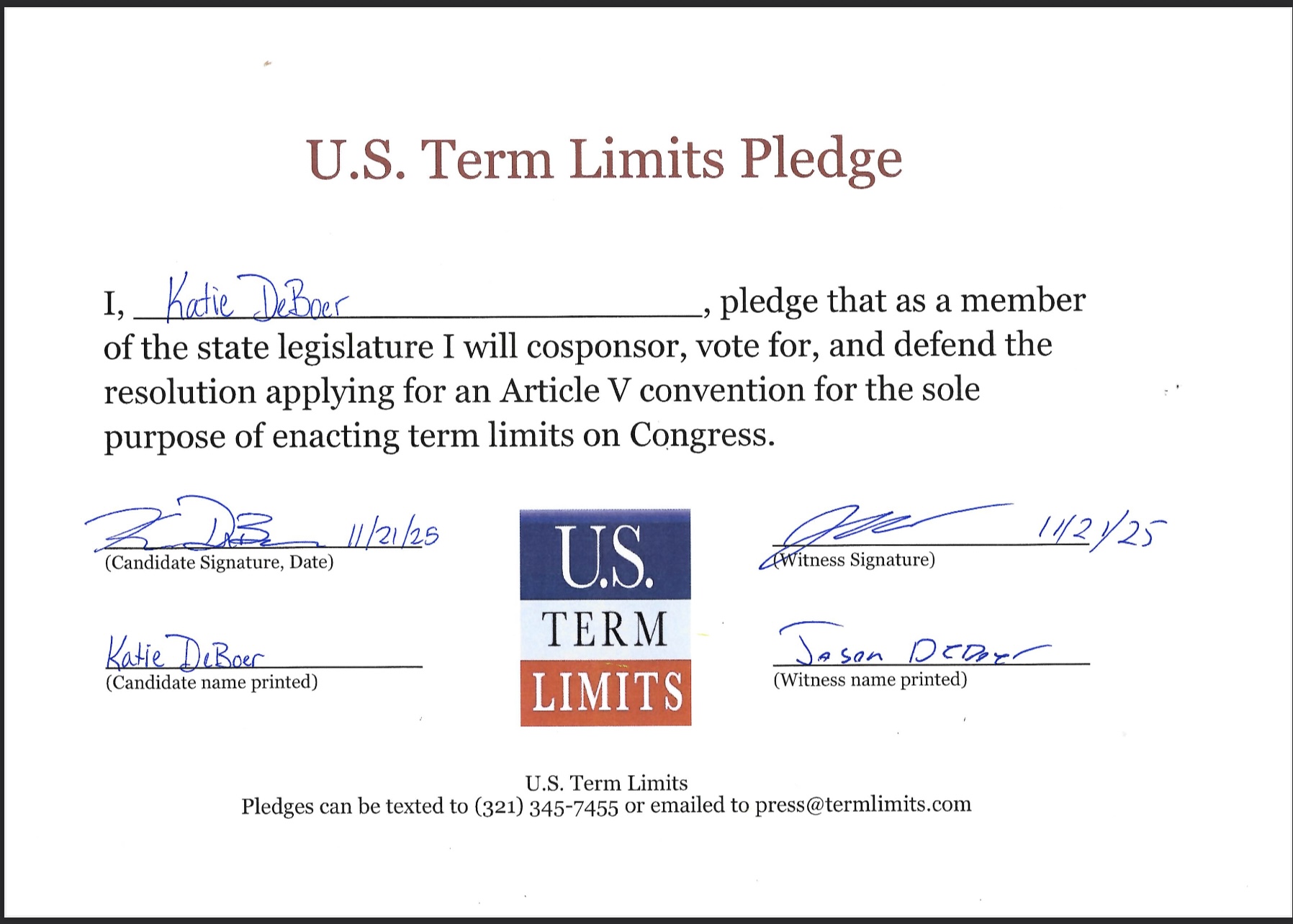 Katie DeBoer Pledges to Support Congressional Term Limits