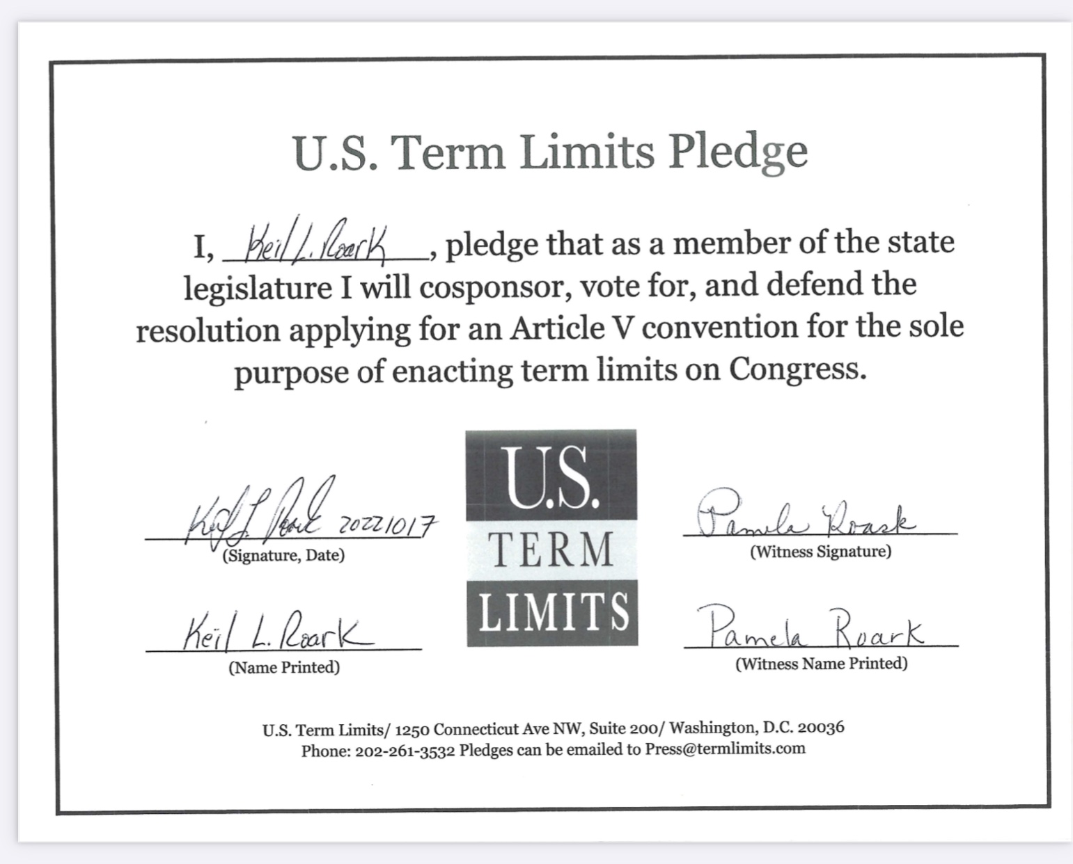 Keil Roark Pledges to Support Congressional Term Limits