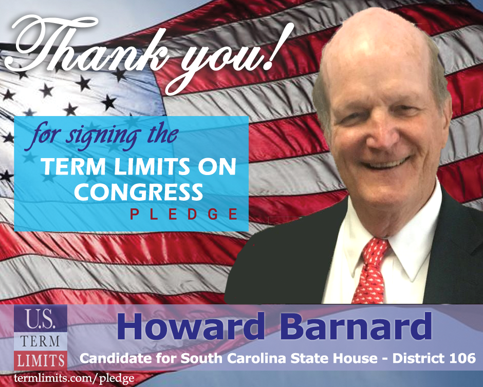 The U.S. Term Limits amendment pledge is provided to every announced candidate for federal office. It reads, “I pledge that as a member of Congress, I will cosponsor and vote for the U.S. Term Limits amendment of three (3) House terms and two (2) Senate terms and no longer limit.” The U.S. Term Limits constitutional amendment has been introduced in both the U.S. Senate by Senator Ted Cruz and his colleagues (SJR3) and the U.S. House by Representative Ralph Norman (HJR12).