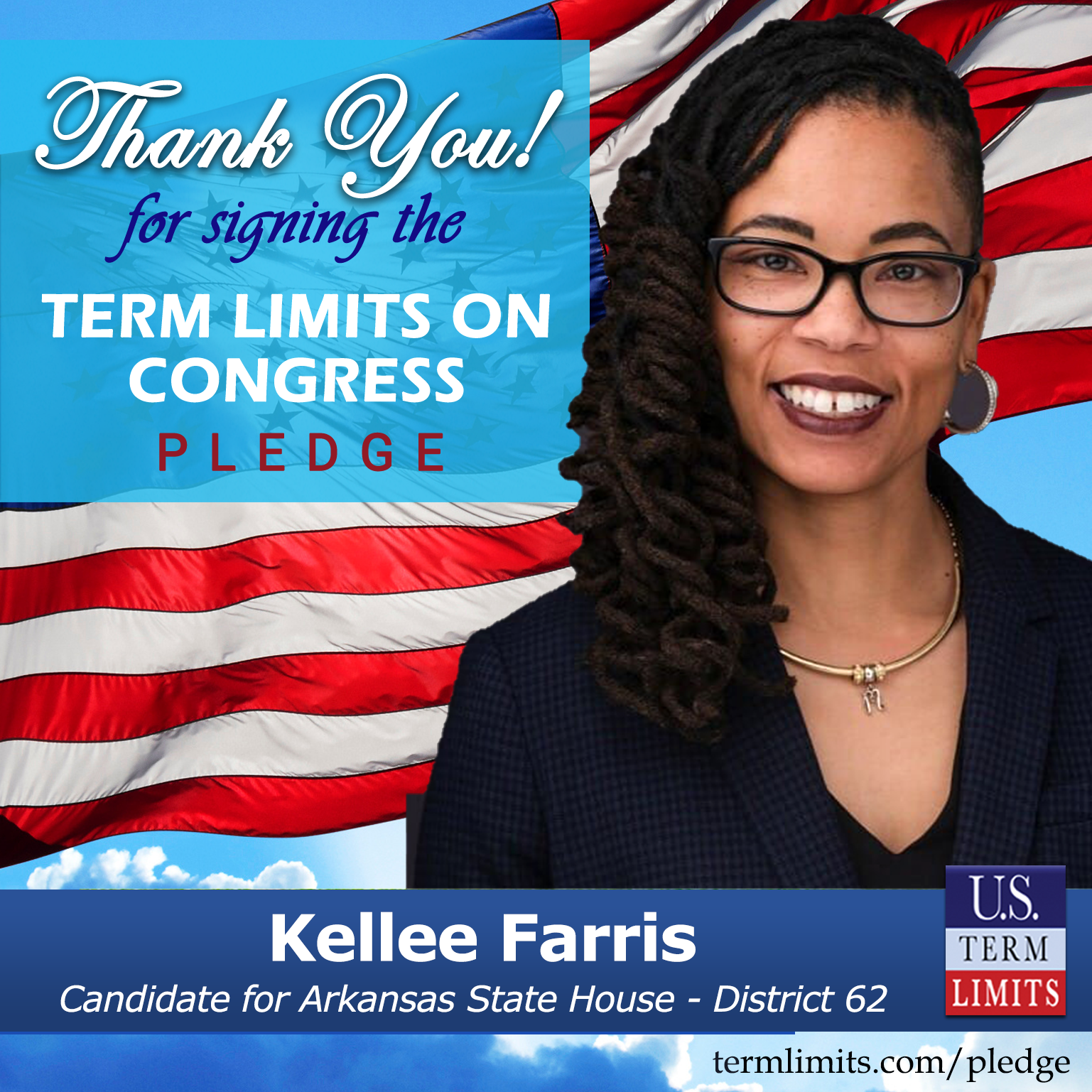 Helena, AR – U.S. Term Limits (USTL), the leader in the national, non-partisan movement to limit terms for elected officials, is gathering support from state lawmakers across the nation. Its mission is to get 34 states to apply for an amendment proposal convention specific to term limits on Congress. Arkansas state house candidate, Kellee Farris (District 62), has committed support for term limits on Congress by signing the term limits convention pledge. Farris is the first signer in this race.