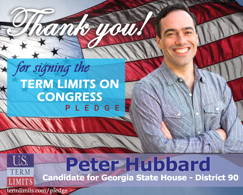 The U.S. Term Limits pledge is provided to candidates and members of state legislatures. It reads, “I pledge that, as a member of the state legislature, I will cosponsor, vote for, and defend the resolution applying for an Article V convention for the limited purpose of enacting term limits on Congress.”