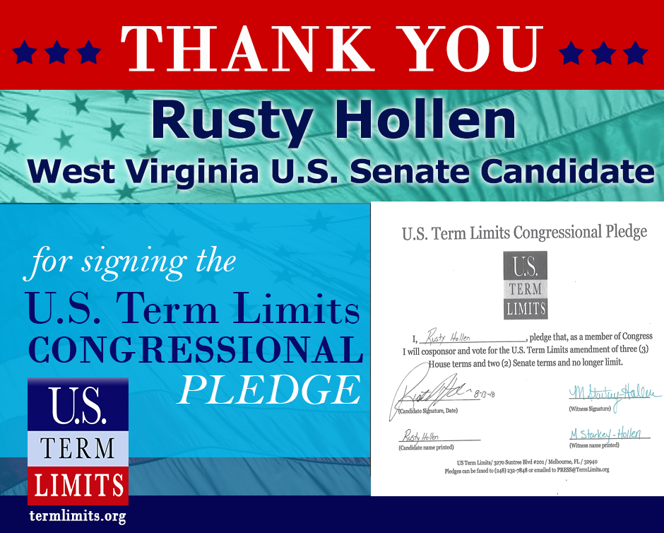 The U.S. Term Limits pledge is provided to candidates and members of state legislatures. It reads, “I pledge that, as a member of the state legislature, I will cosponsor, vote for, and defend the resolution applying for an Article V convention for the limited purpose of enacting term limits on Congress.”