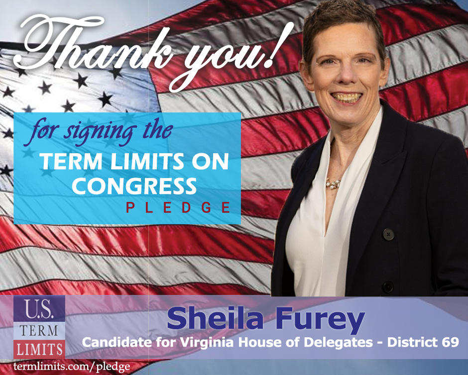 The U.S. Term Limits amendment pledge is provided to every announced candidate for federal office. It reads, “I pledge that as a member of Congress, I will cosponsor and vote for the U.S. Term Limits amendment of three (3) House terms and two (2) Senate terms and no longer limit.”