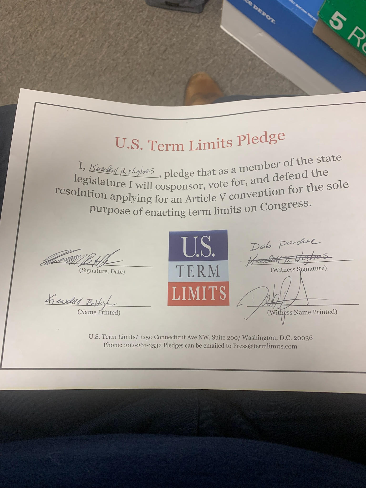 Kendall Hughes Pledges to Support Congressional Term Limits