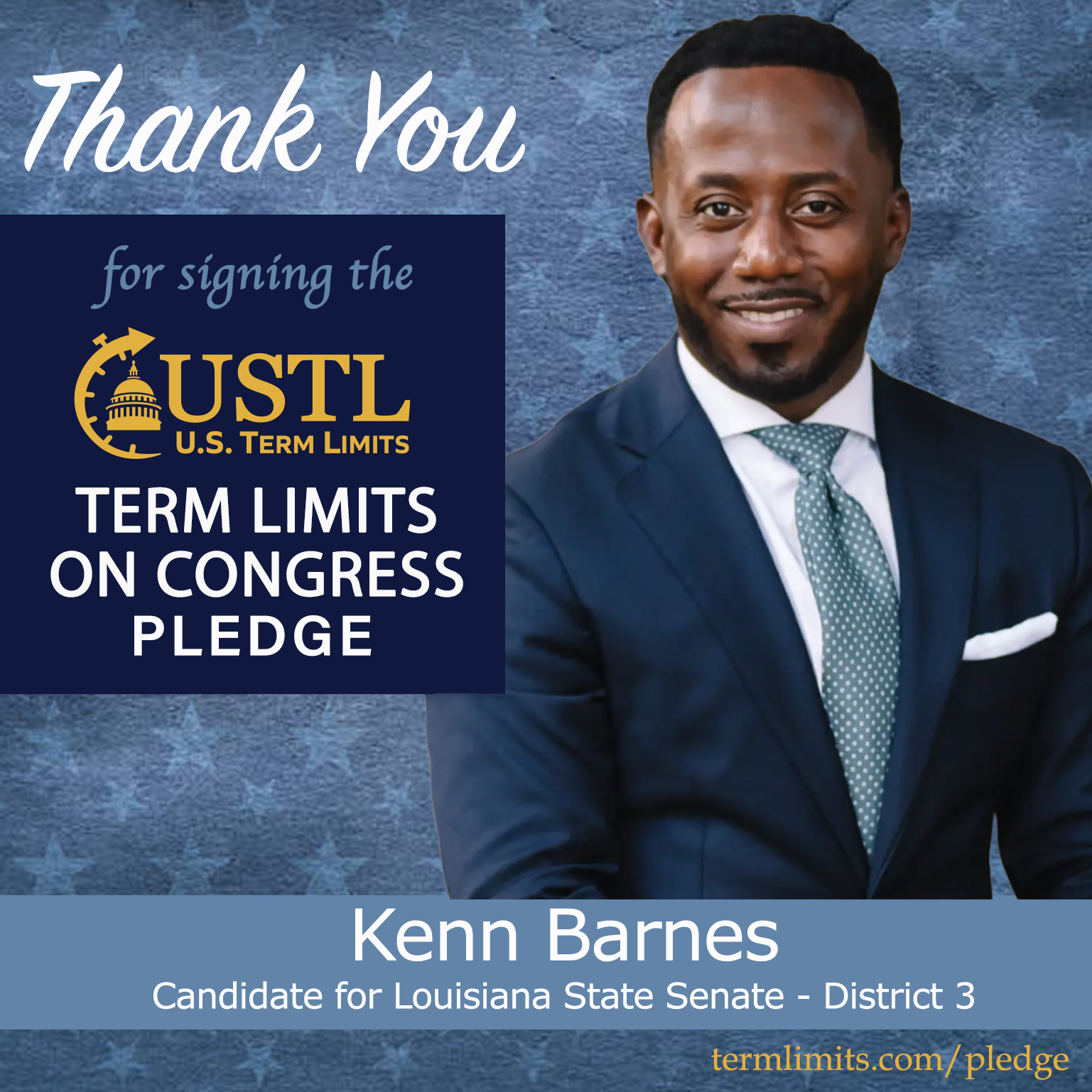 Chalmette, LA – U.S. Term Limits (USTL), the leader in the national, non-partisan movement to limit terms for elected officials, is gathering support from state lawmakers across the nation. Its mission is to get 34 states to apply for an amendment proposal convention specific to term limits on Congress. Louisiana state senate candidate, Kenn Barnes (district 3), has committed support for term limits on Congress by signing the term limits convention pledge. The special election is scheduled for February 7, 2026.