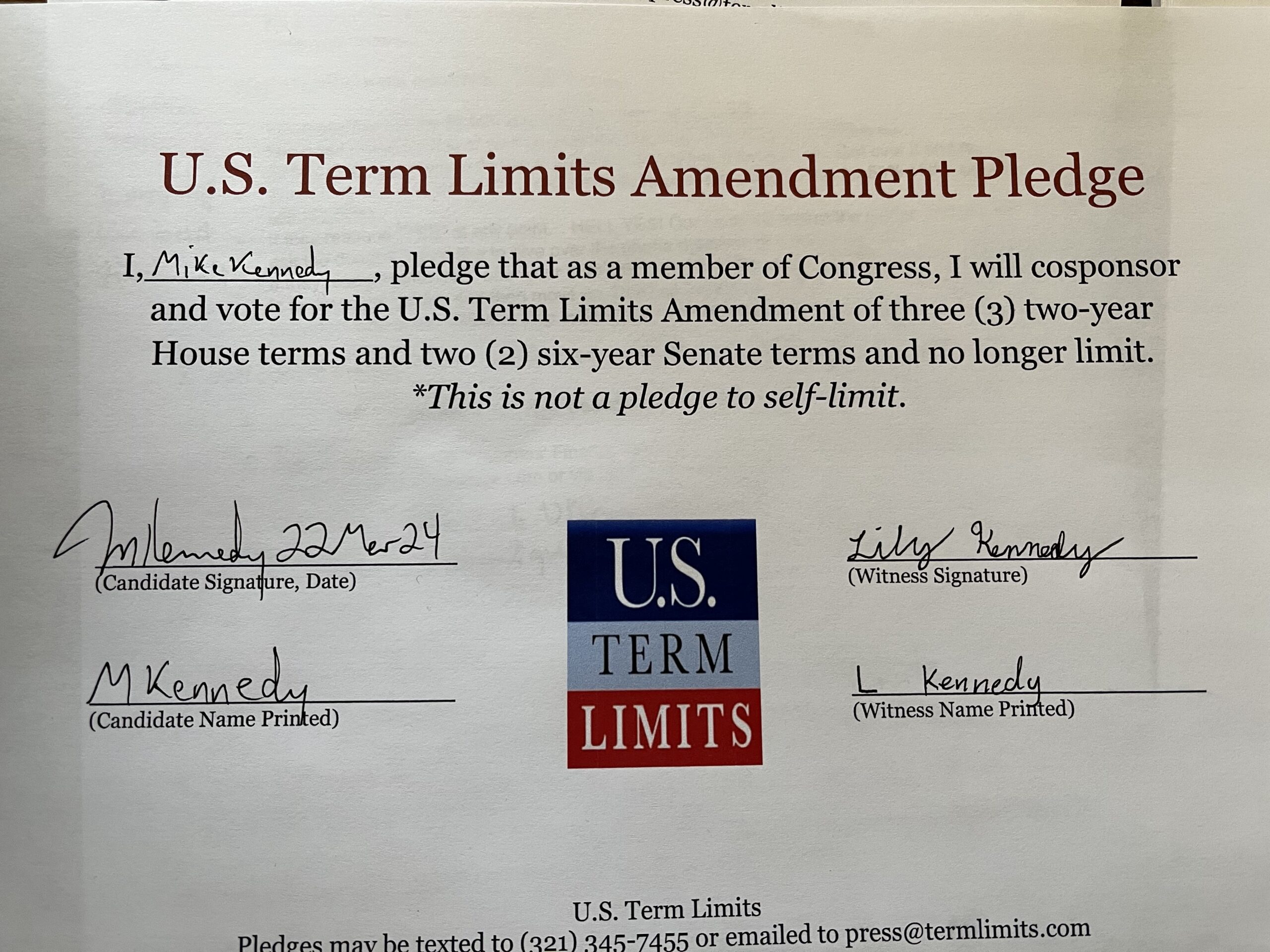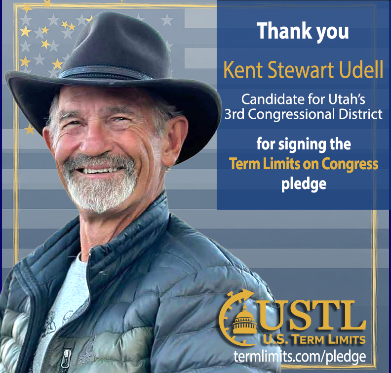Washington D.C. – U.S. Term Limits (USTL), the leader in the non-partisan national movement to limit terms for elected officials, praises 2022 U.S. house candidate for Utah, Kent Udell (district 3), for signing the pledge for an amendment to term limit Congress. Previously, Rep. Mike Kennedy also signed.