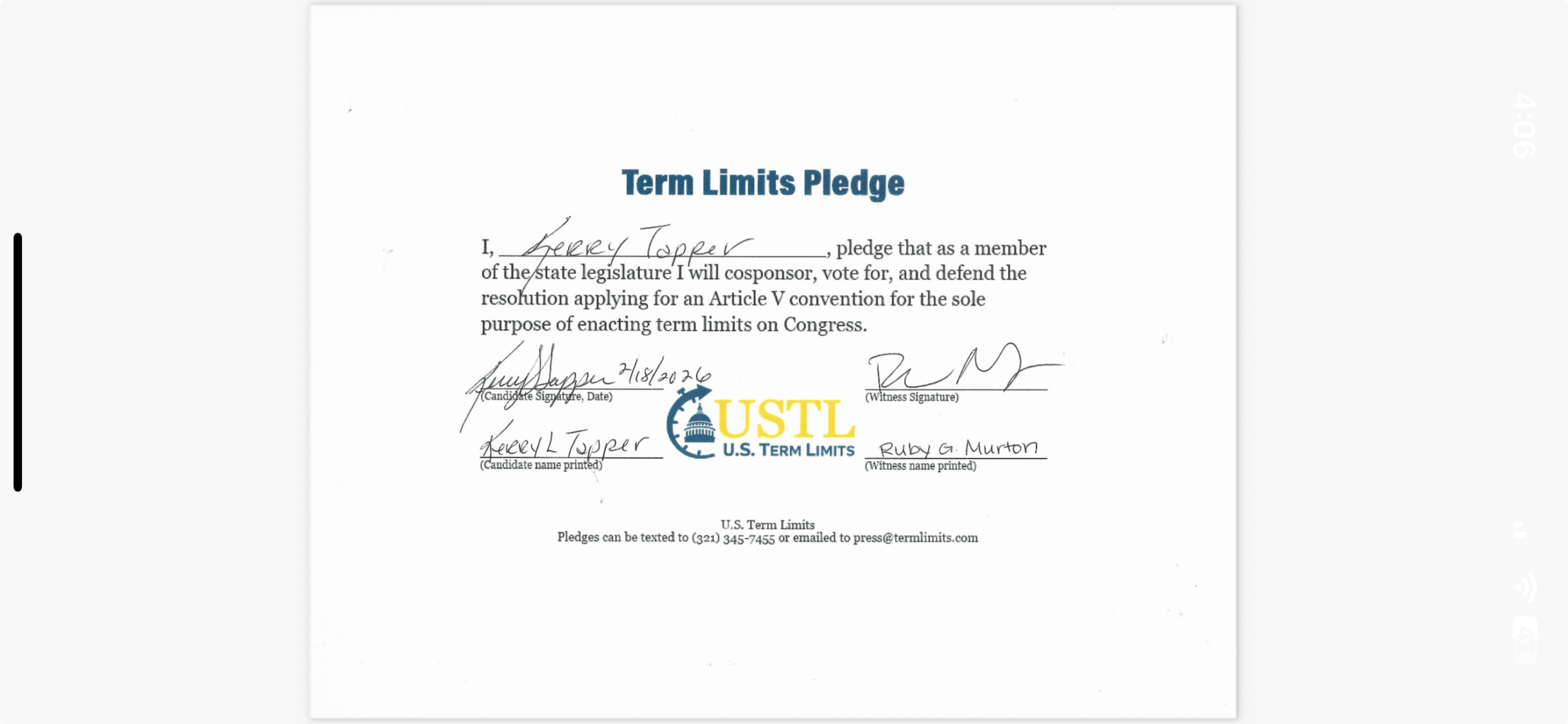 Kerry Tapper Pledges to Support Congressional Term Limits