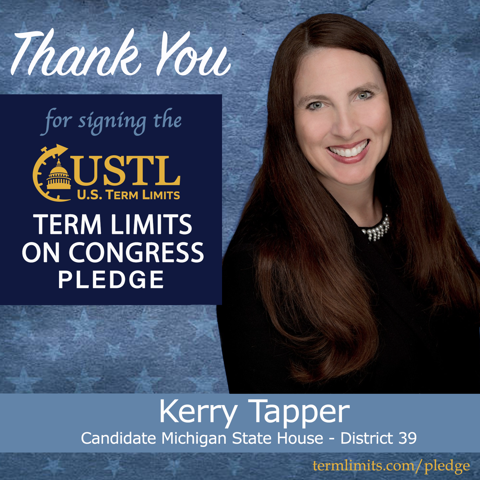 Bloomingdale, MI – U.S. Term Limits (USTL), the leader in the national, non-partisan movement to limit terms for elected officials, is gathering support from state lawmakers across the nation. Its mission is to get 34 states to apply for an amendment proposal convention specific to term limits on Congress. 2026 Michigan state house candidate, Kerry Tapper (district 39), has committed support for term limits on Congress by signing the term limits convention pledge.