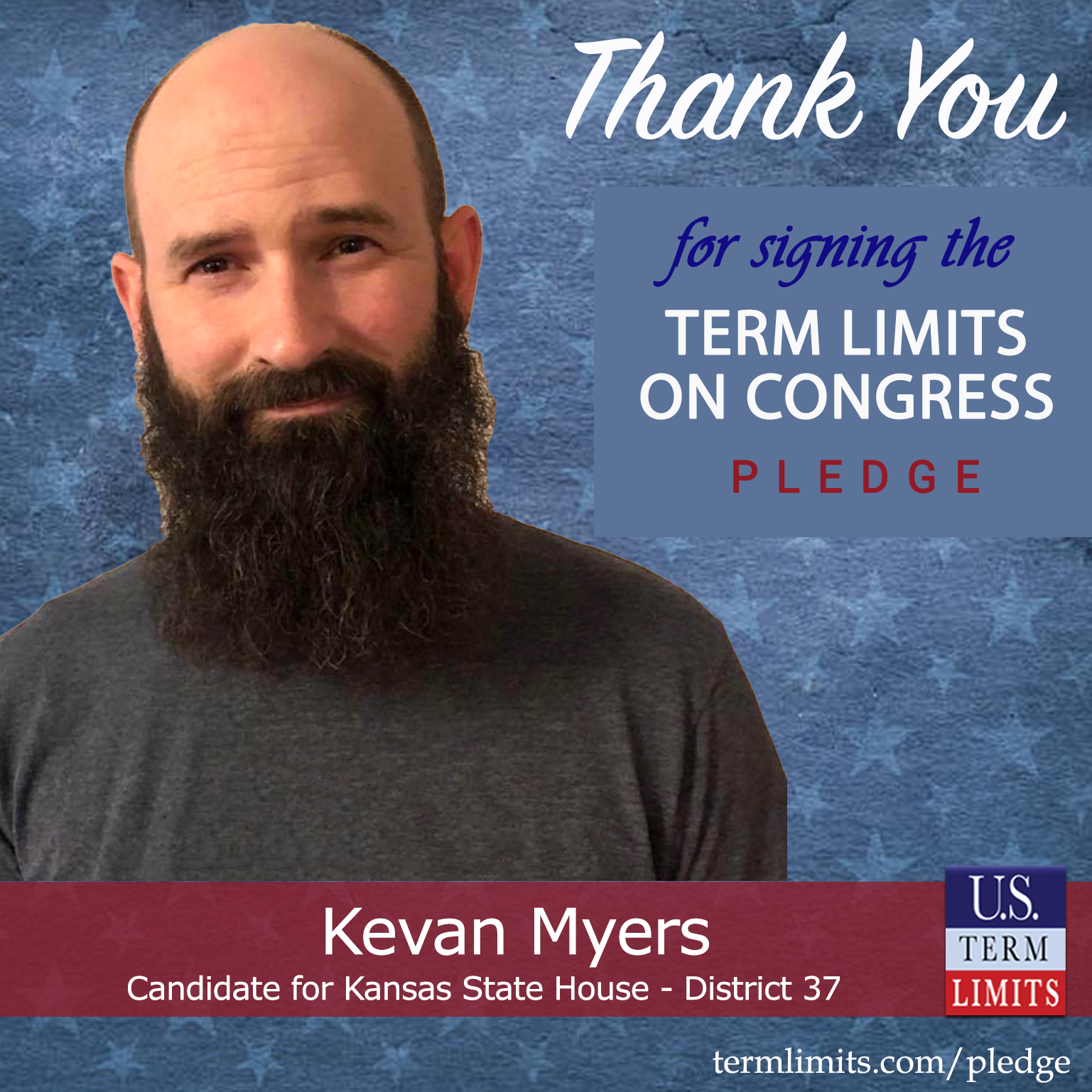 Kansas City, KS – U.S. Term Limits (USTL), the leader in the national, non-partisan movement to limit terms for elected officials, is gathering support from state lawmakers across the nation. Its mission is to get 34 states to apply for an amendment proposal convention specific to term limits on Congress. Kansas state house candidate, Kevan Myers (District 37), has committed support for term limits on Congress by signing the term limits convention pledge.