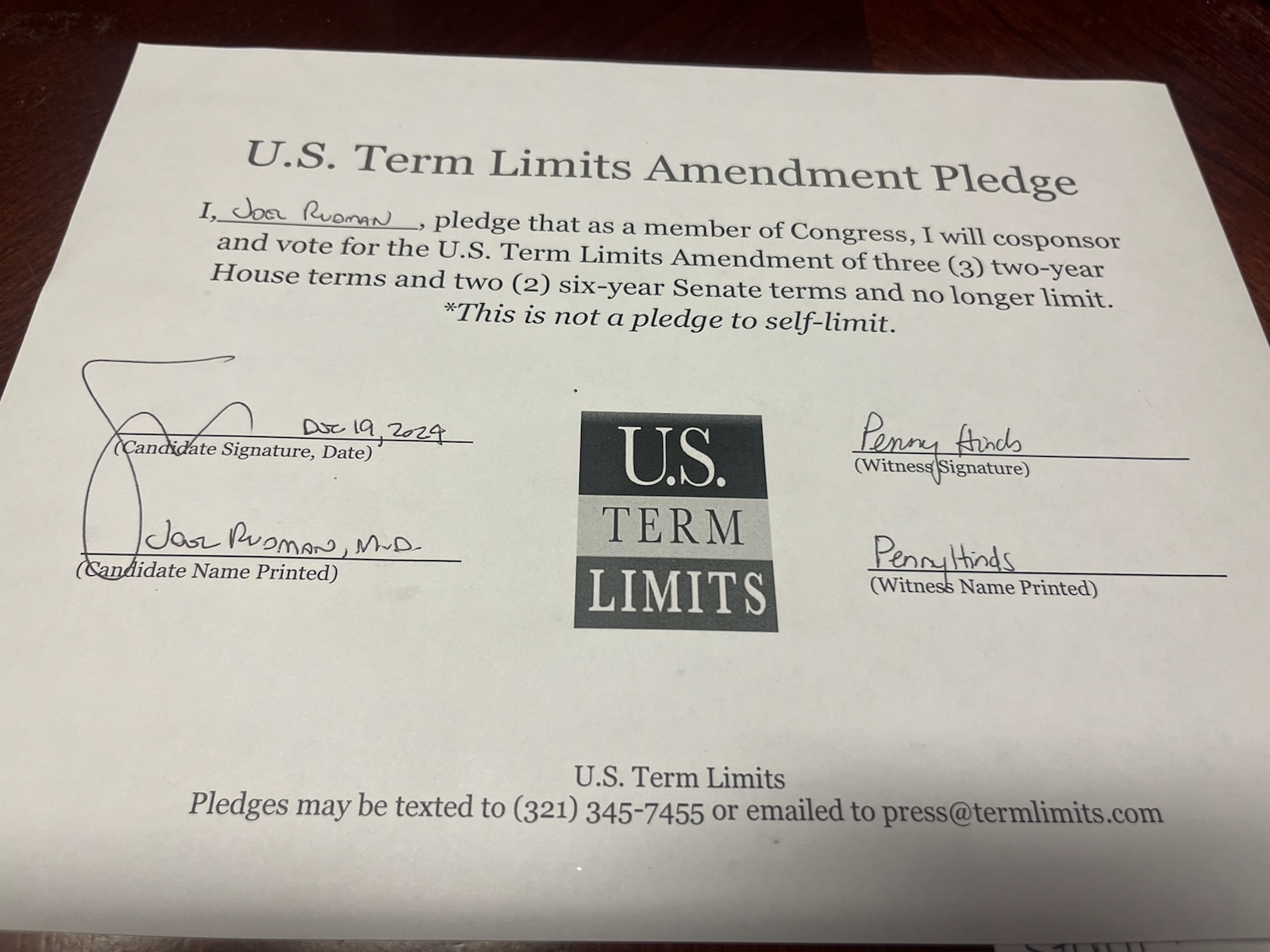 The U.S. Term Limits amendment pledge is provided to every announced candidate for federal office. It reads, “I pledge that as a member of Congress, I will cosponsor and vote for the U.S. Term Limits amendment of three (3) House terms and two (2) Senate terms and no longer limit.”