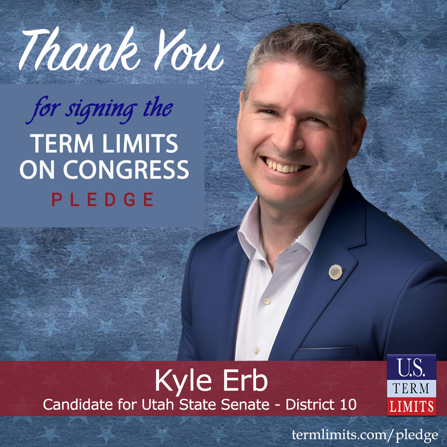 USTL President, Philip Blumel, commented on Erb’s pledge saying, “Kyle’s strong support of term limits shows that there are individuals who are willing to listen to the majority of voters who want term limits. America needs a Congress that will be served by citizen legislators, not career politicians.”