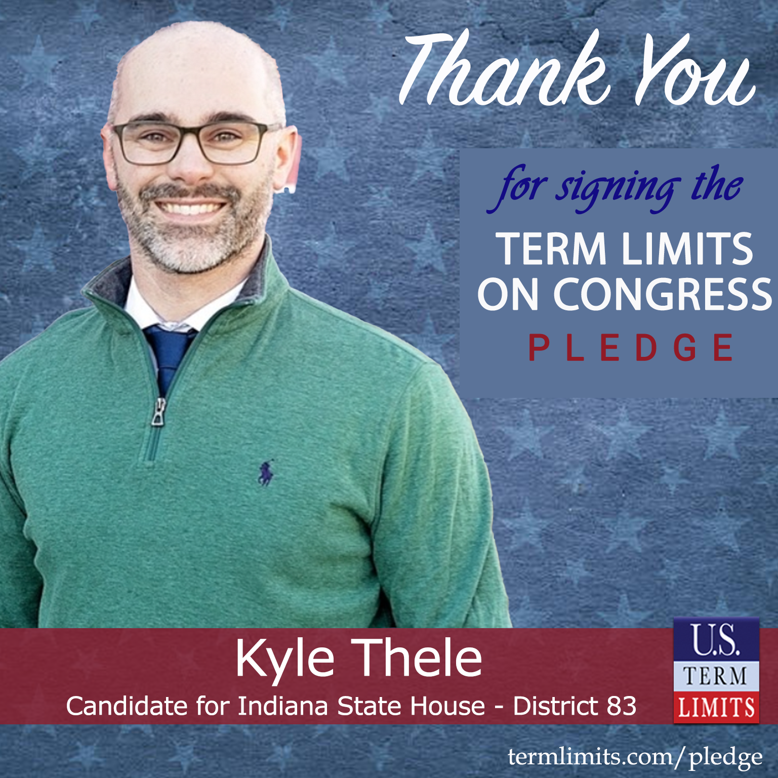 Columbia City, IN – U.S. Term Limits (USTL), the leader in the national, non-partisan movement to limit terms for elected officials, is gathering support from state lawmakers across the nation. Its mission is to get 34 states to apply for an amendment proposal convention specific to term limits on Congress. Indiana state house candidate, Kyle Thele (district 83), has committed support for term limits on Congress by signing the term limits convention pledge. He is the first signer in this race.