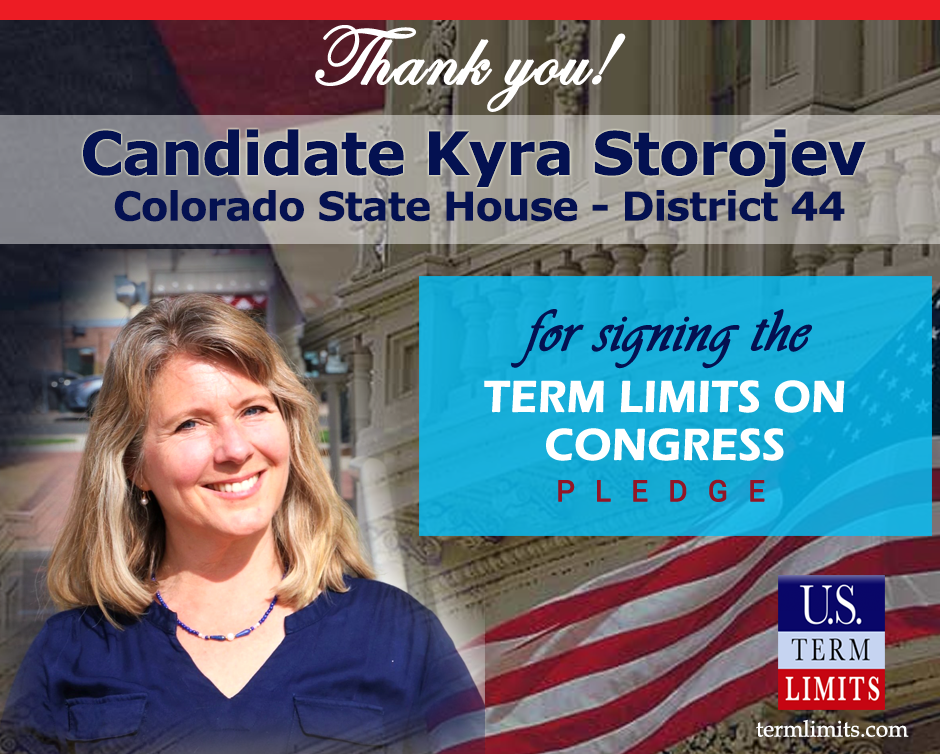Washington, D.C. – U.S. Term Limits (USTL), the leader in the national, non-partisan movement to limit terms for elected officials, is gathering support from state lawmakers across the nation. Its mission is to get 34 states to apply for an amendment proposal convention specific to term limits on Congress. 2020 Colorado state house candidate, Kyra Storojev (district 44), has committed support for term limits on Congress by signing the Term Limits Convention pledge. The primary election is scheduled for June 30, 2020.