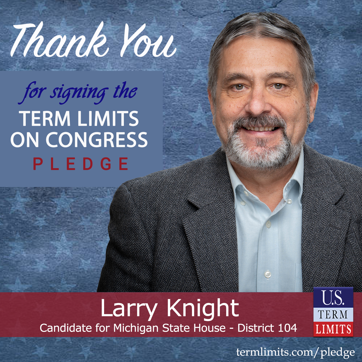 Frankfort, MI – U.S. Term Limits (USTL), the leader in the national, non-partisan movement to limit terms for elected officials, is gathering support from state lawmakers across the nation. Its mission is to get 34 states to apply for an amendment proposal convention specific to term limits on Congress. Michigan state house candidate, Larry Knight (District 104), has committed support for term limits on Congress by signing the term limits convention pledge.