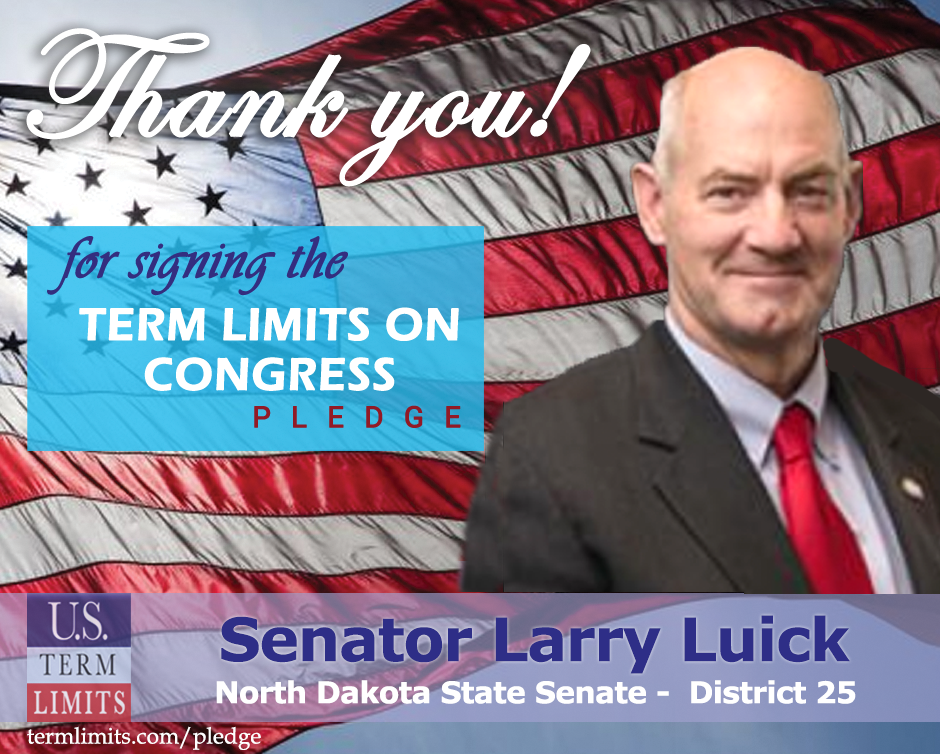 USTL President, Philip Blumel, commented on Sen. Luick’s pledge saying, “Larry’s support of term limits shows that there are individuals who are willing to listen to the majority of voters who want term limits. America needs a Congress that will be served by citizen legislators, not career politicians.”