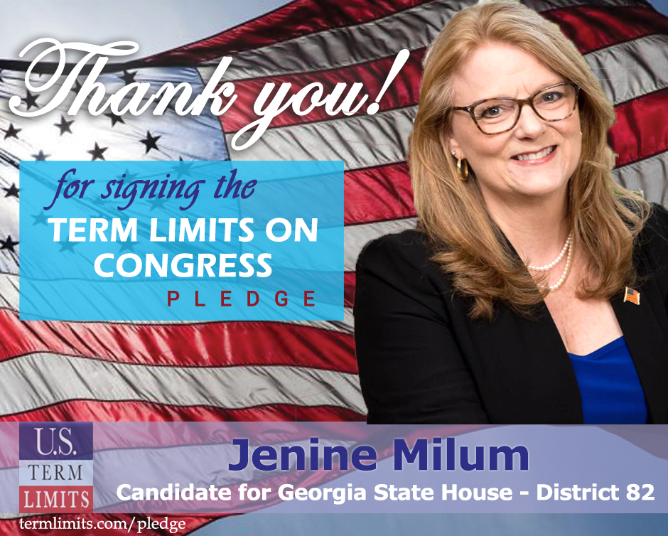 The U.S. Term Limits pledge is provided to candidates and members of state legislatures. It reads, “I pledge that, as a member of the state legislature, I will cosponsor, vote for, and defend the resolution applying for an Article V convention for the limited purpose of enacting term limits on Congress.”