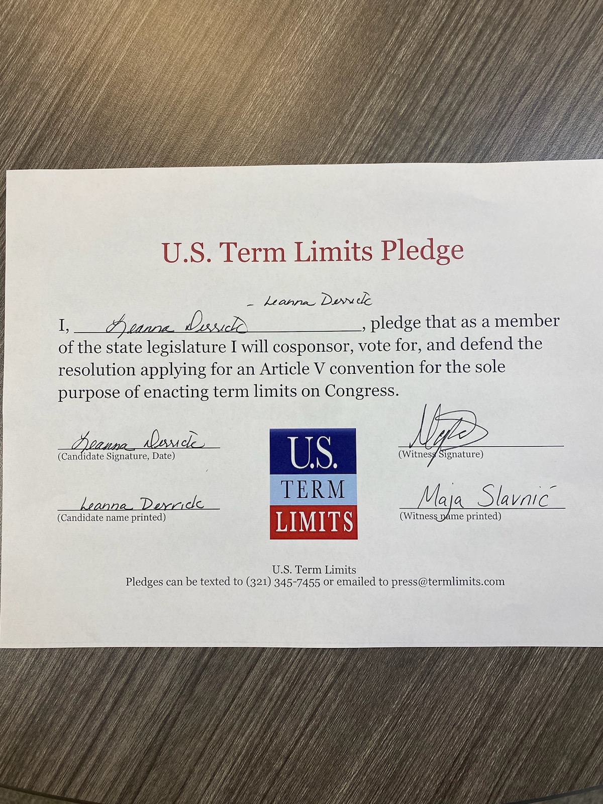 LeAnna Derrick Pledges to Support Congressional Term Limits