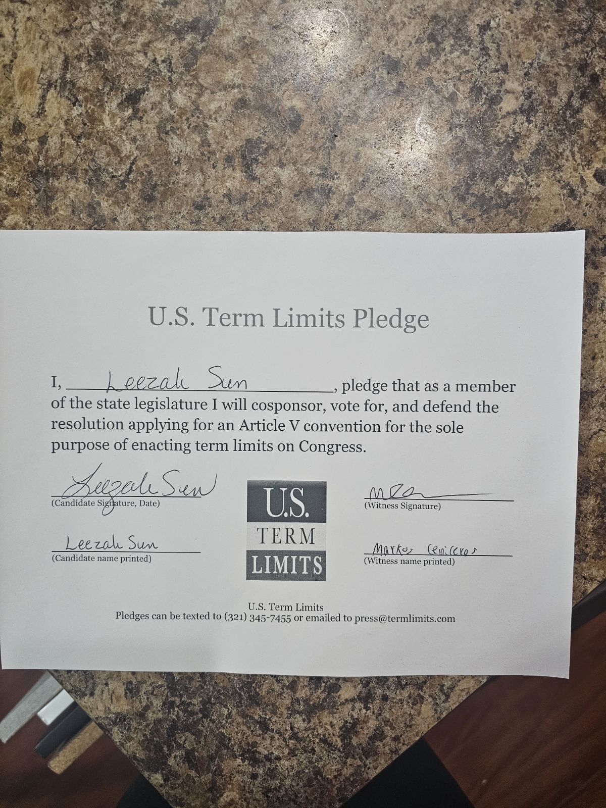 Leezah Sun Pledges to Support Congressional Term Limits
