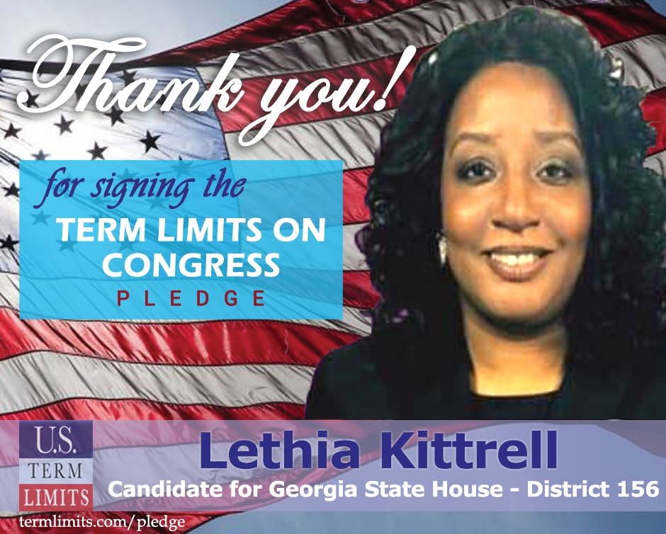 Atlanta, GA– U.S. Term Limits (USTL), the leader in the national, non-partisan movement to limit terms for elected officials, is gathering support from state lawmakers across the nation. Its mission is to get 34 states to apply for an amendment proposal convention specific to term limits on Congress. Georgia state house candidate, Lethia Kittrell (district 156), has committed support for term limits on Congress by signing the U.S. Term Limits pledge.