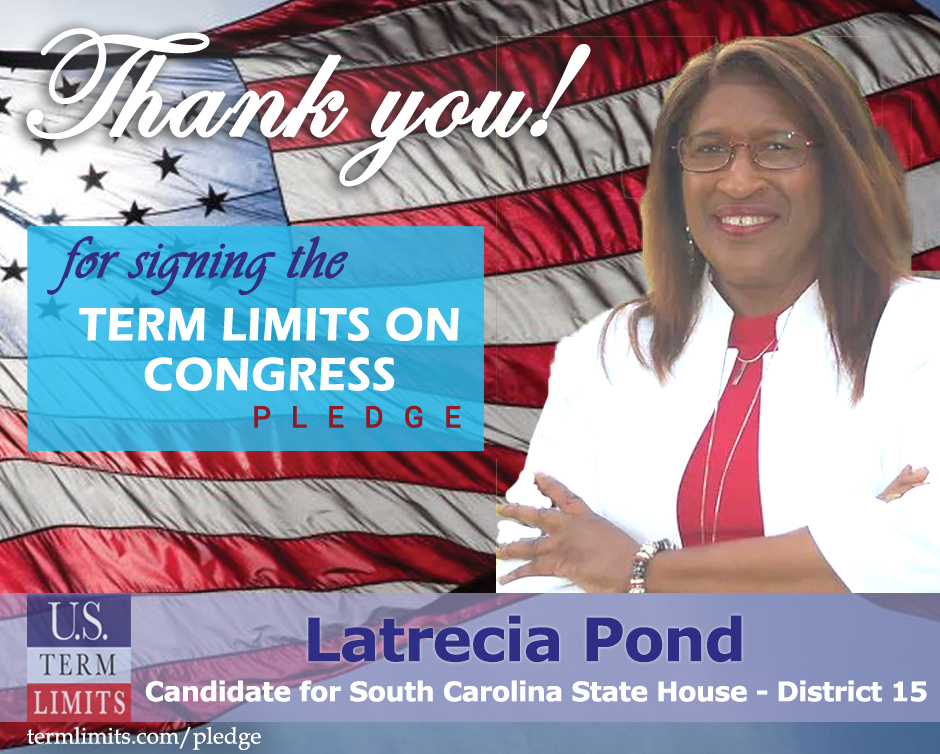 Goose Creek, SC – U.S. Term Limits (USTL), the leader in the national, non-partisan movement to limit terms for elected officials, is gathering support from state lawmakers across the nation. Its mission is to get 34 states to apply for an amendment proposal convention specific to term limits on Congress. South Carolina state house candidate, Letricia Pond (district 15), has committed support for term limits on Congress by signing the Term Limits Convention pledge.
