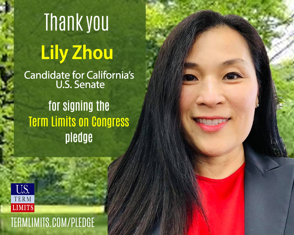 Washington D.C. – U.S. Term Limits (USTL), the leader in the non-partisan national movement to limit terms for elected officials, praises 2022 U.S. senate candidate for California, Lily Zhou, for signing the pledge for an amendment to term limit Congress.