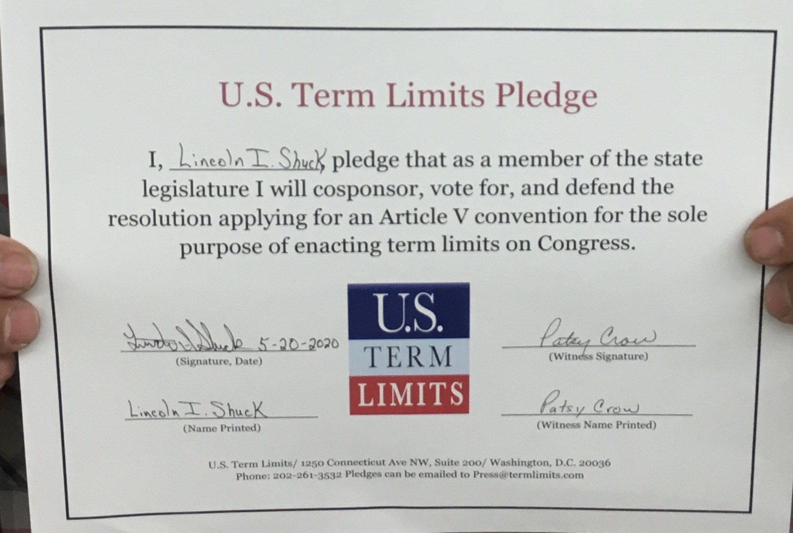 Lincoln Shuck Pledges to Support Congressional Term Limits