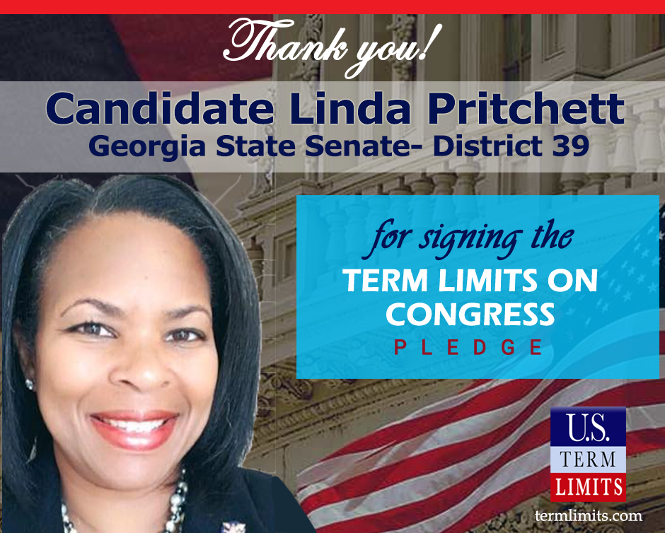 Washington, D.C. – U.S. Term Limits (USTL), the leader in the national, non-partisan movement to limit terms for elected officials, is gathering support from state lawmakers across the nation. Its mission is to get 34 states to apply for an amendment proposal convention specific to term limits on Congress. 2020 Georgia state senate candidate Linda Pritchett (district 39), has committed support for term limits on Congress by signing the Term Limits Convention pledge. Pritchett is the first signer in this race. The primary election is scheduled for June 9, 2020.