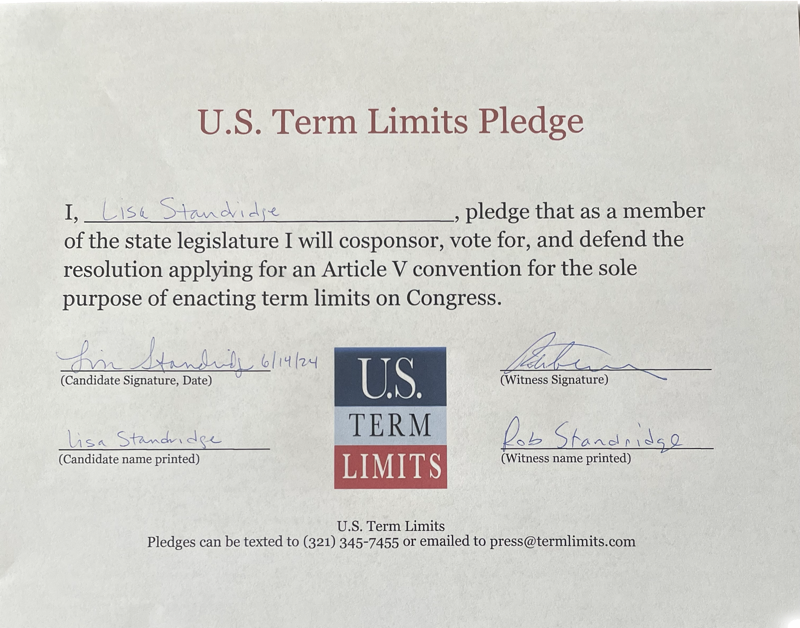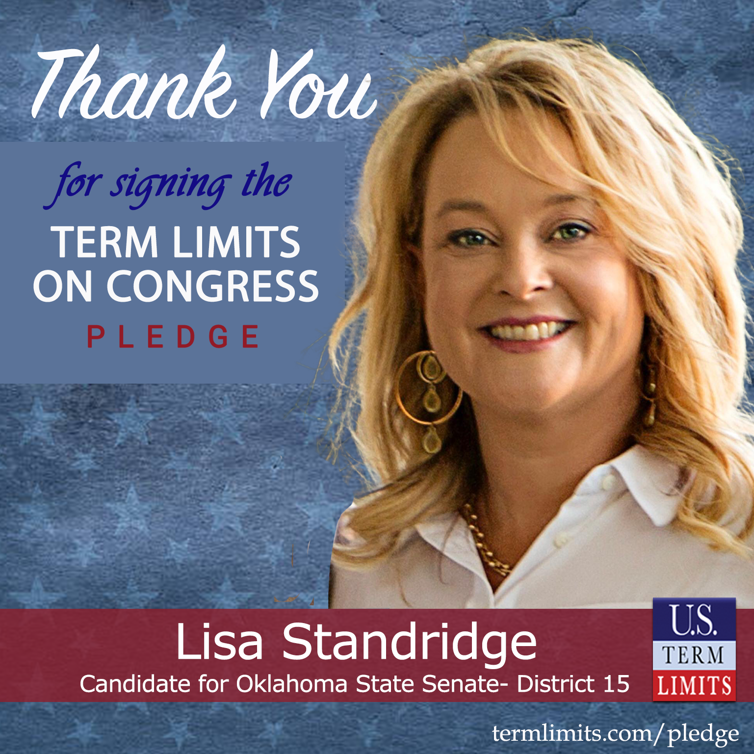 Oklahoma City, OK – U.S. Term Limits (USTL), the leader in the national, non-partisan movement to limit terms for elected officials, is gathering support from state lawmakers across the nation. Its mission is to get 34 states to apply for an amendment proposal convention specific to term limits on Congress. Oklahoma state senate candidate, Lisa Standridge (District 15), has committed support for term limits on Congress by signing the Term Limits Convention Pledge. Previously, candidates Brandon Nofire and Robert Keyes also signed the pledge.