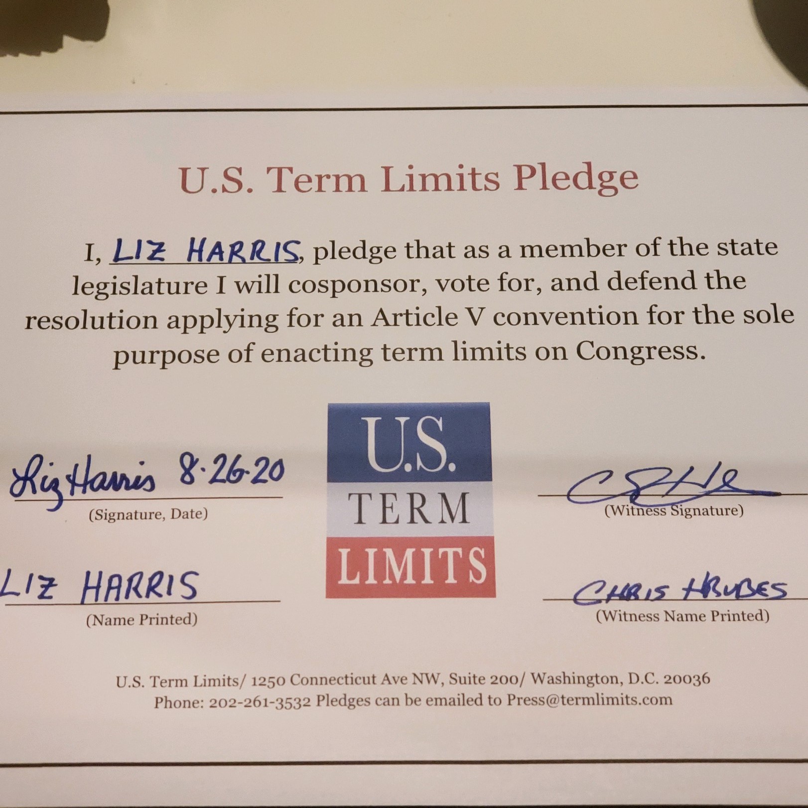 Washington, D.C. – U.S. Term Limits (USTL), the leader in the national, non-partisan movement to limit terms for elected officials, is gathering support from state lawmakers across the nation. Its mission is to get 34 states to apply for an amendment proposal convention specific to term limits on Congress. Arizona state house candidate, Liz Harris (district 17), has committed support for term limits on Congress by signing the Term Limits Convention pledge. Previously, Rep. Jeff Weninger also signed the pledge.